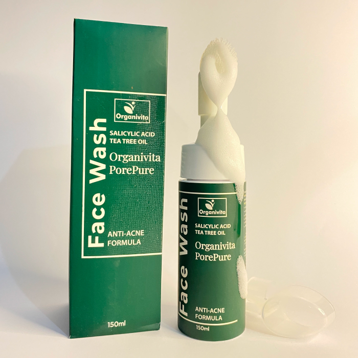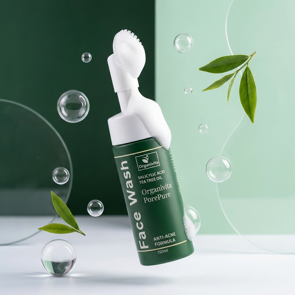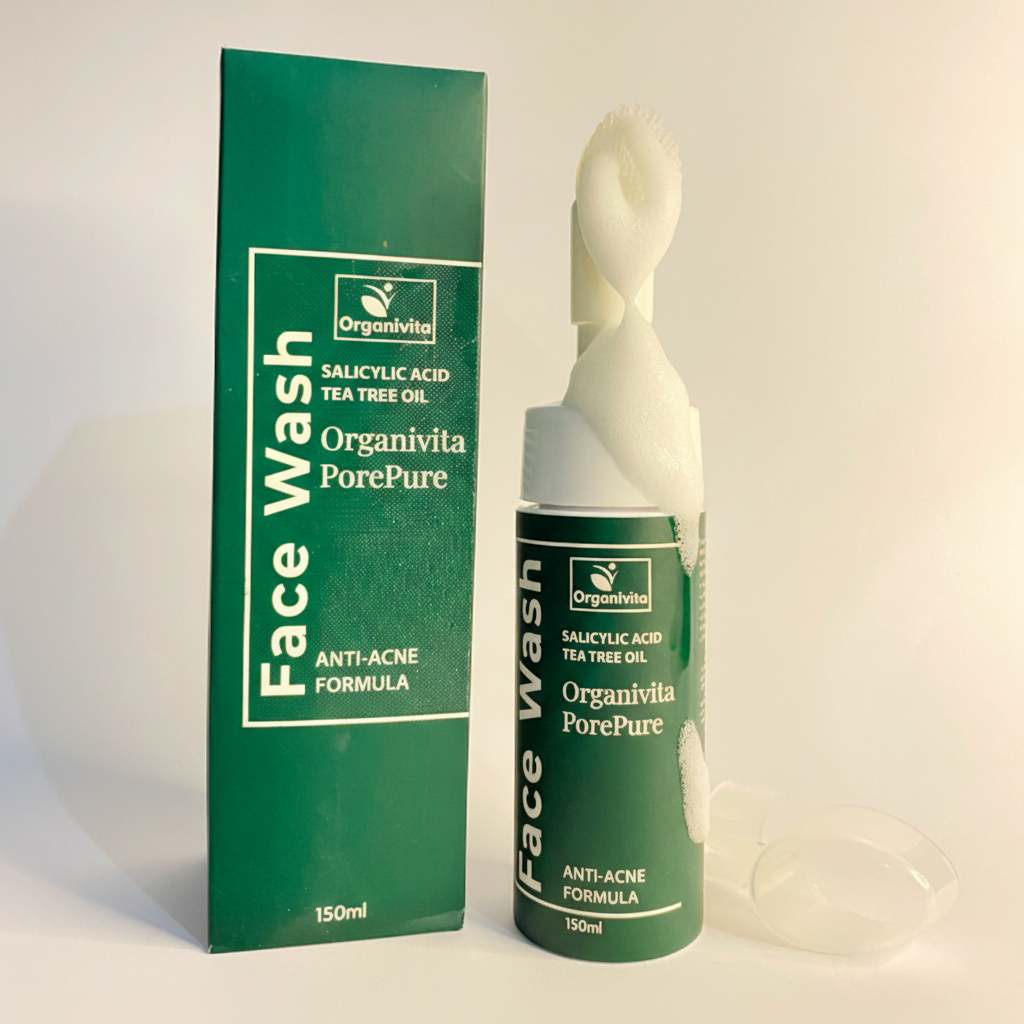 Pore Pure Foaming Facewash combines salicylic acid and tea tree oil to deeply cleanse pores, control oil, and calm acne-prone skin, helping maintain a clearer and healthier complexion.