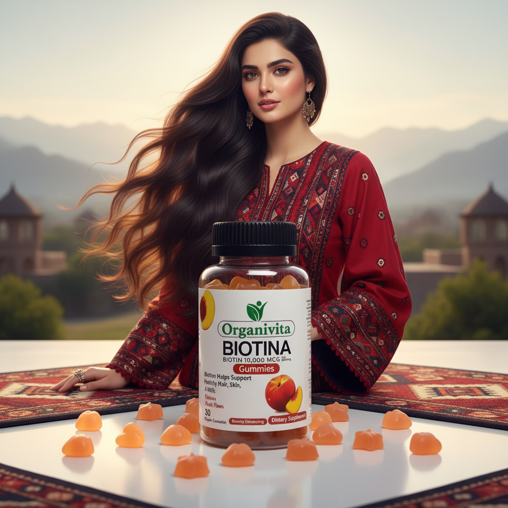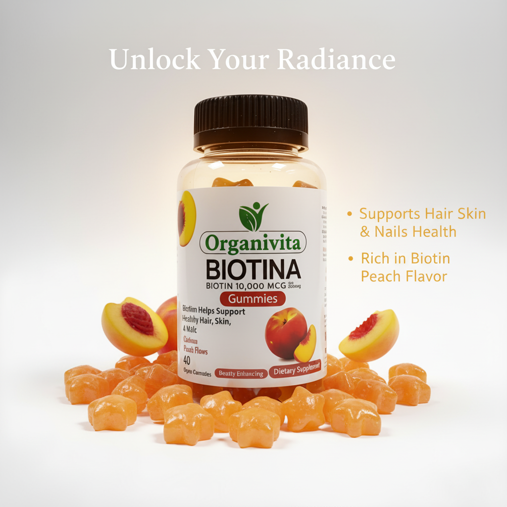 Promotes Healthy Hair Growth Biotin (Vitamin B7) supports keratin production, helping reduce hair fall, improve thickness, and enhance natural shine.